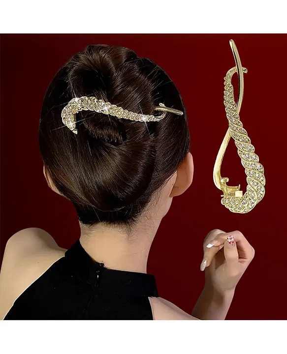 LYKAA Fairy Bun Rhinestone Hair Clip, Large Gold Claw, Korean Design for Women & Girls