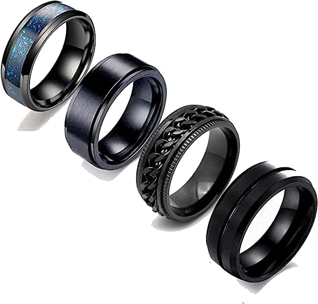 MEENAZ Black Rings for Men Mens couples gents friends unisex Boys Boyfriend heart love Stainless Steel Stylish Valentine gifts proposal Couple band thumb Titanium Silver gold combo Finger Ring