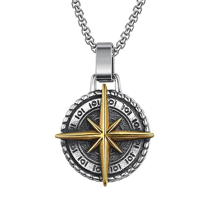 Fashion Frill Silver Chain Pendant For Men Round Pendant Cross Compass Necklace Chain For Men Boys Men's Jewellery Pendant Necklace Accessories